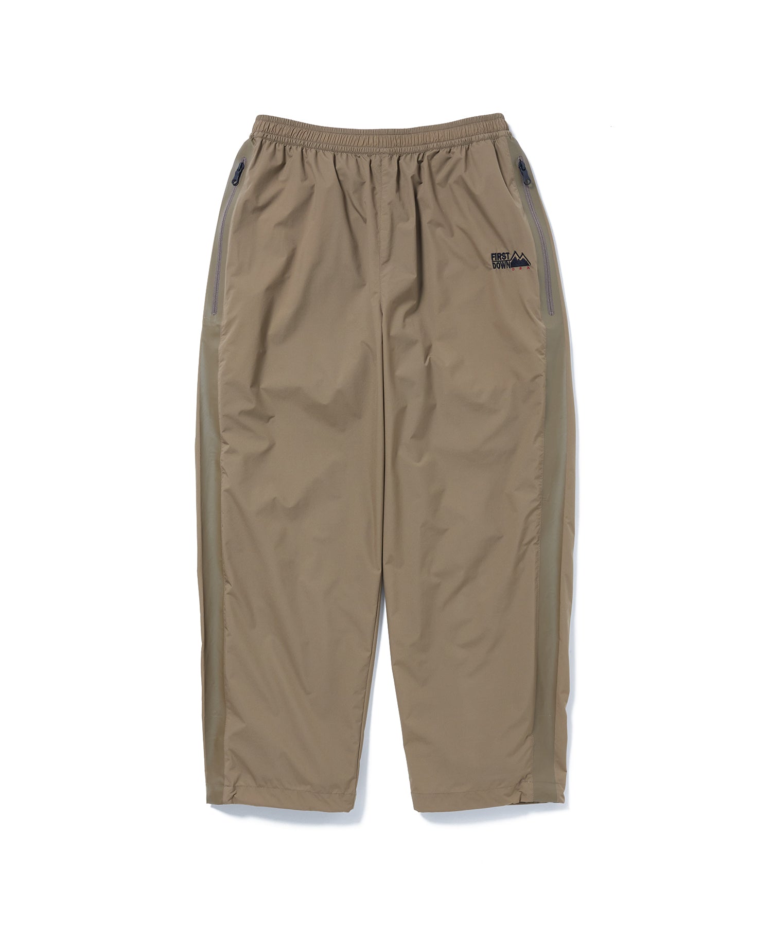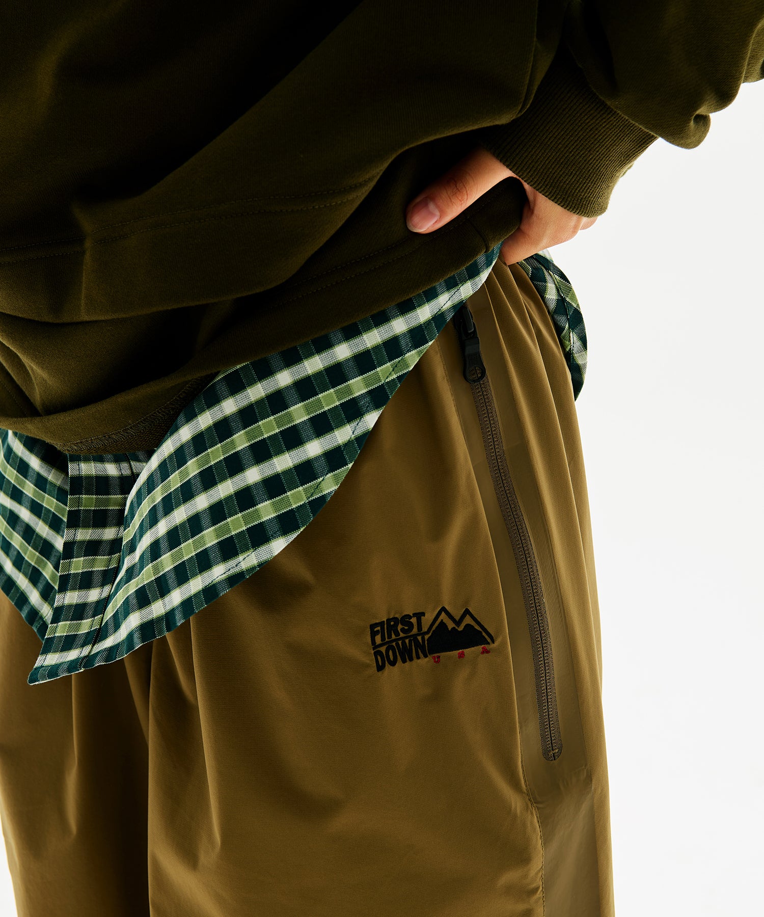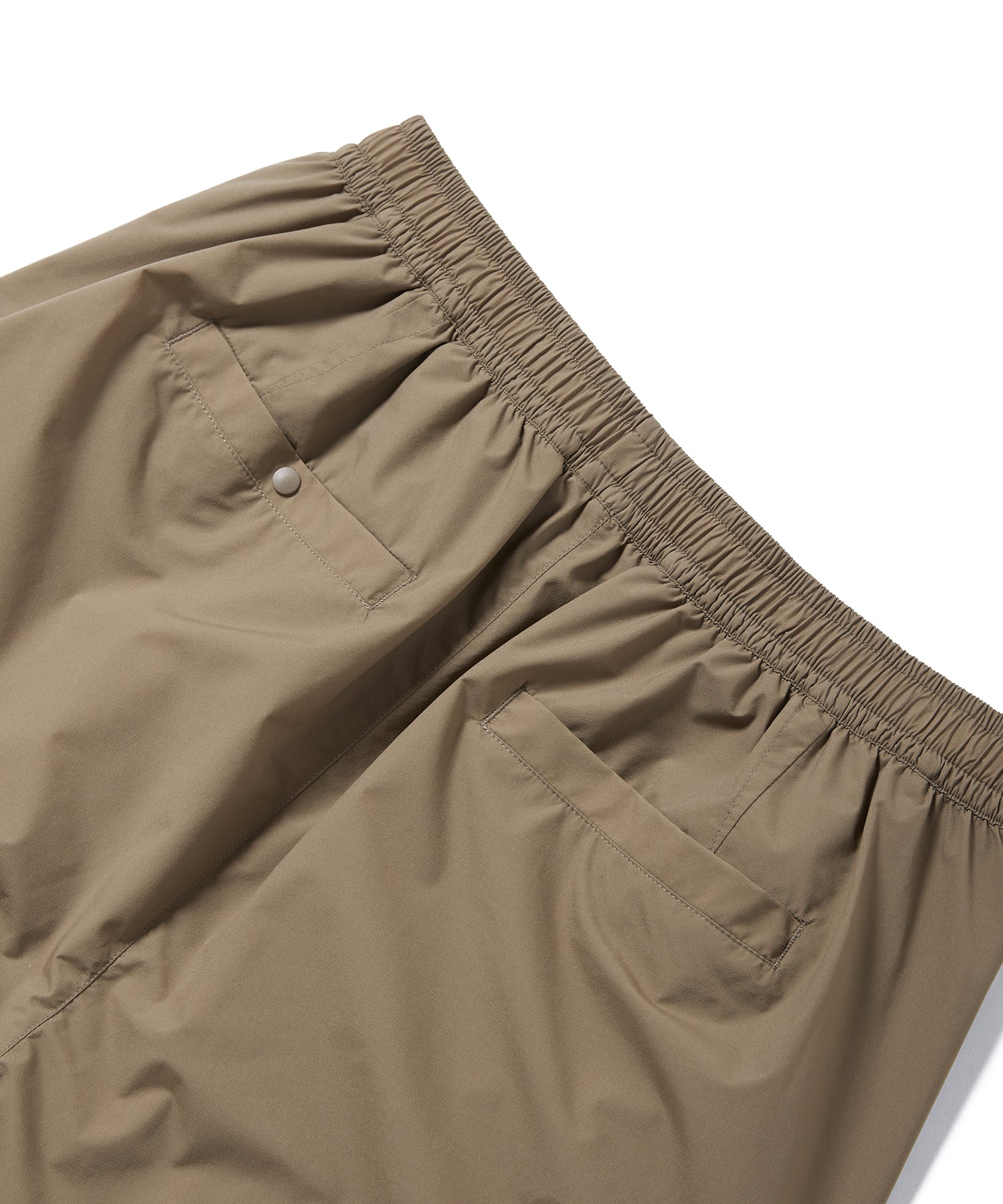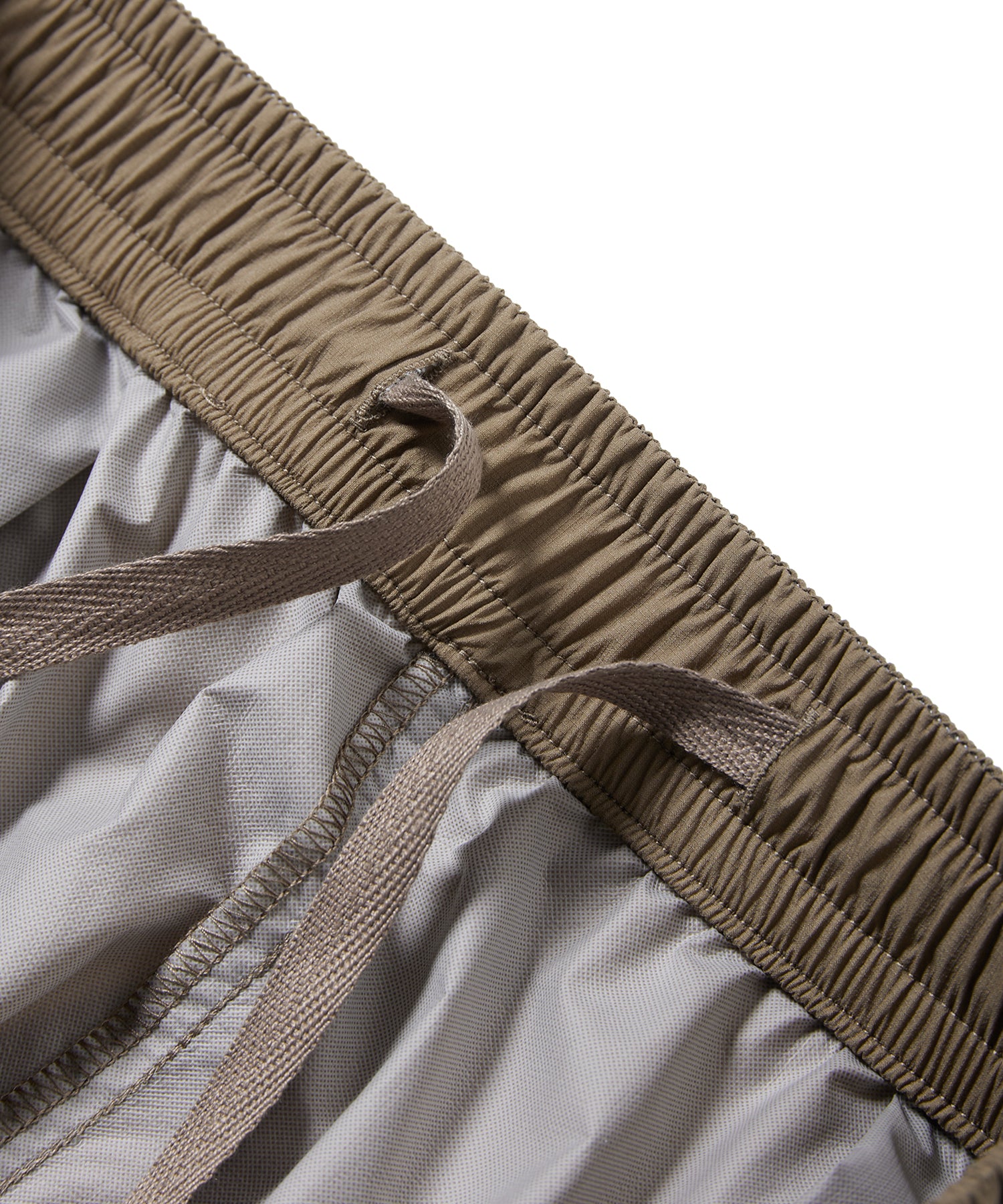 テック感のある素材とシルエットを活かし、ナイロンアウターや機能系トップスと合わせたアクティブなスタイルが好相性。ボリュームのあるスニーカーやサンダルを合わせて裾のドローコードでシルエットを調整すれば、こなれ感のあるストリートスタイルに。