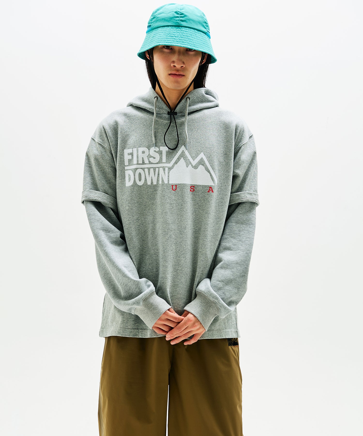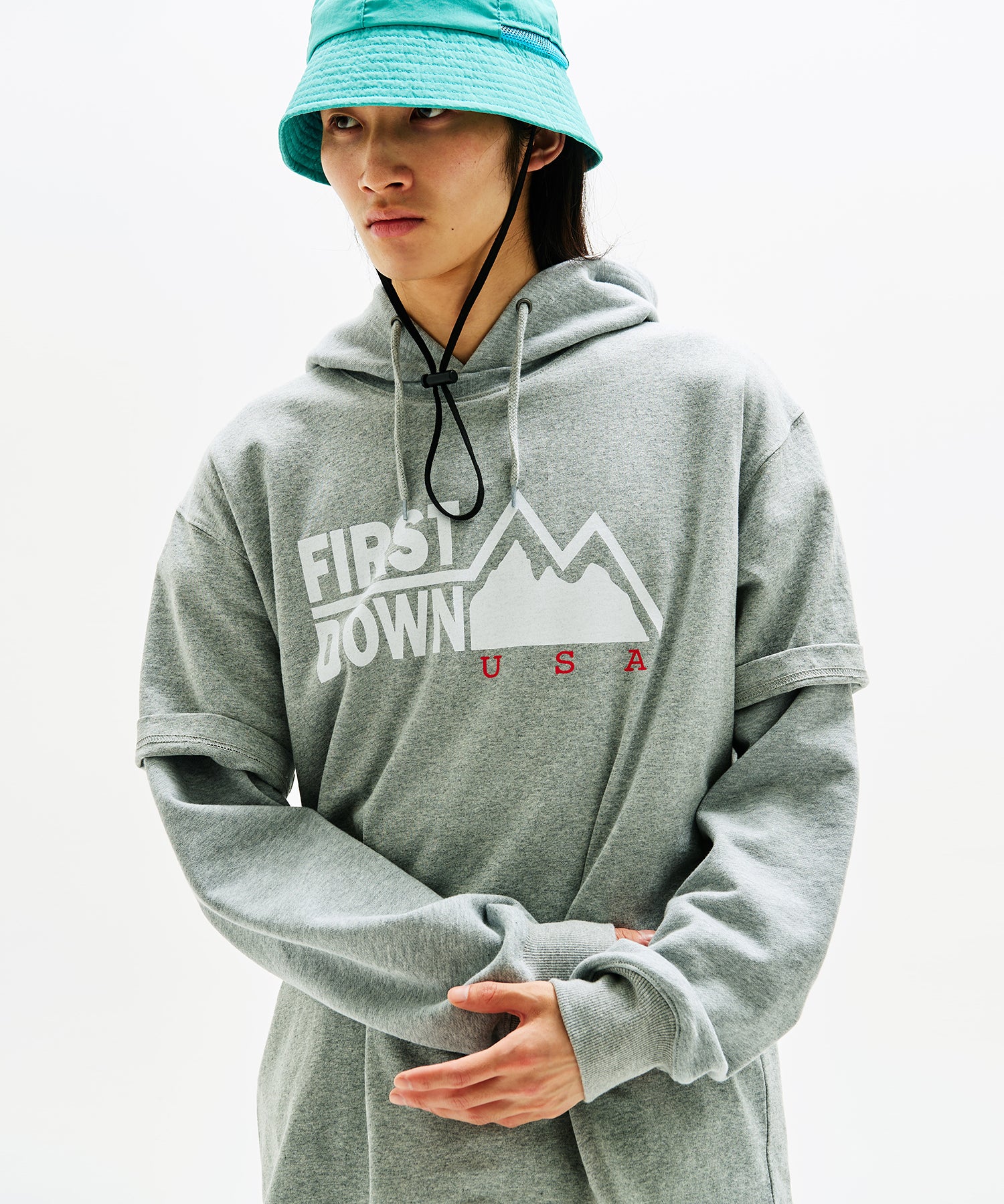 FIRST DOWN USAについては全体的にやや大きめのサイズスペックになっております。チャート欄のシルエットに関しては、自社比較にて明記しております。