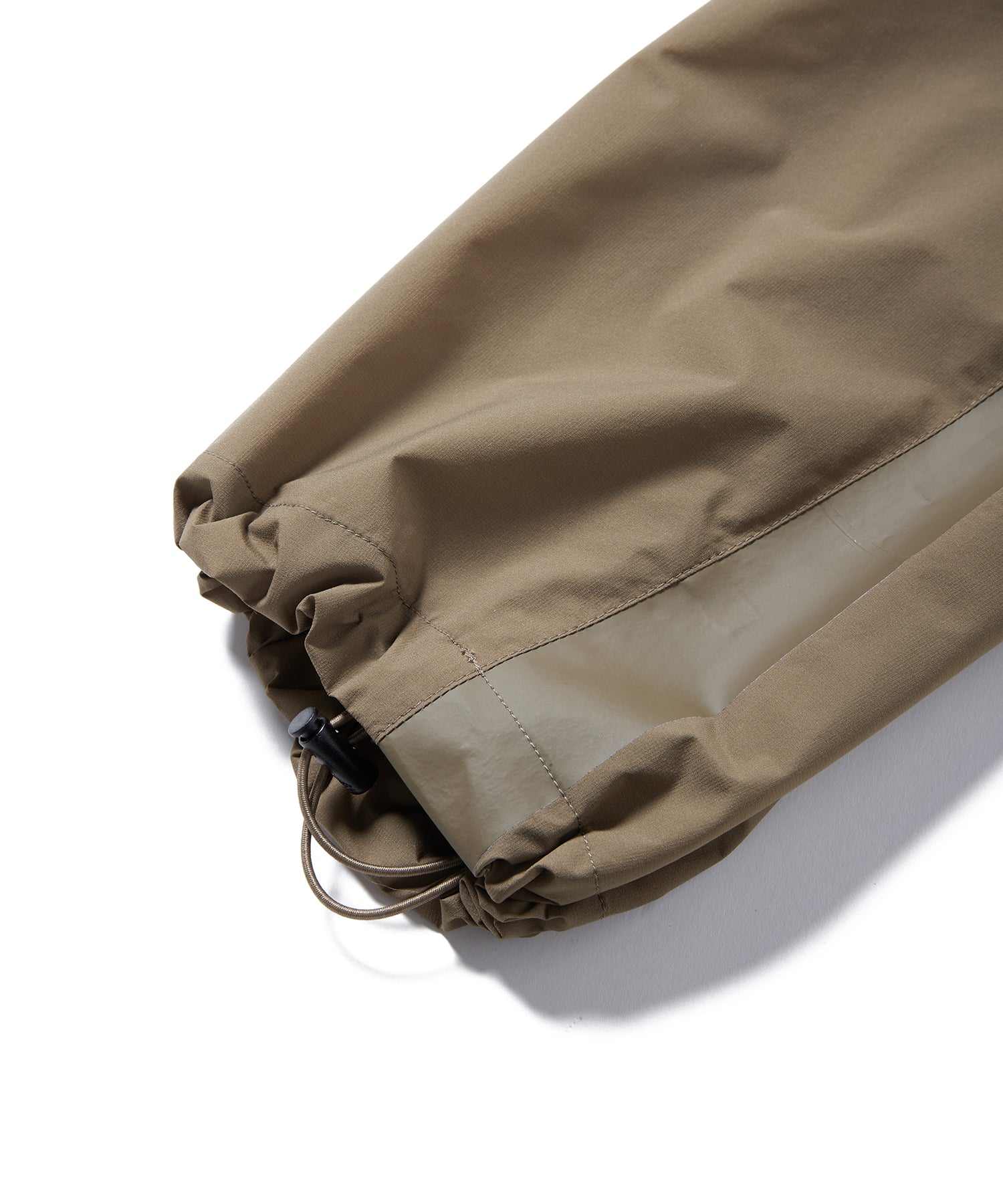表地には、耐久撥水性・防風性・透湿性を兼ね備えた機能素材「PERTEX SHIELD(2.5レイヤー)」を使用。軽量ながらも高い防水性と快適性を発揮し、悪天候下やアウトドアシーンでも活躍。