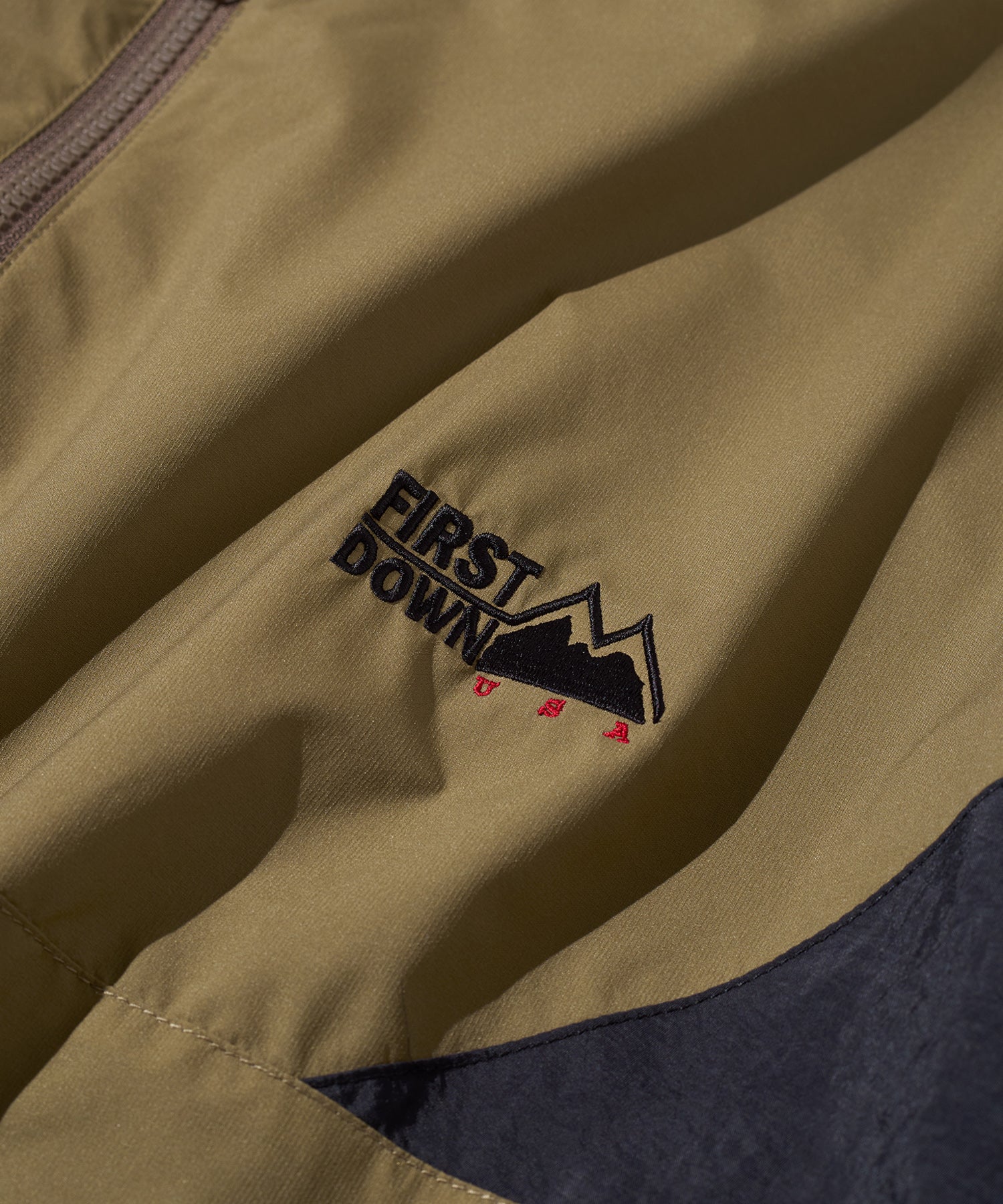 表地には、耐久撥水性・防風性・透湿性を兼ね備えた機能素材「PERTEX SHIELD(2.5レイヤー)」を使用。裏側には撥水性を備えたナイロンワッシャー素材を使用し、軽量かつシャリ感のある質感が特徴。