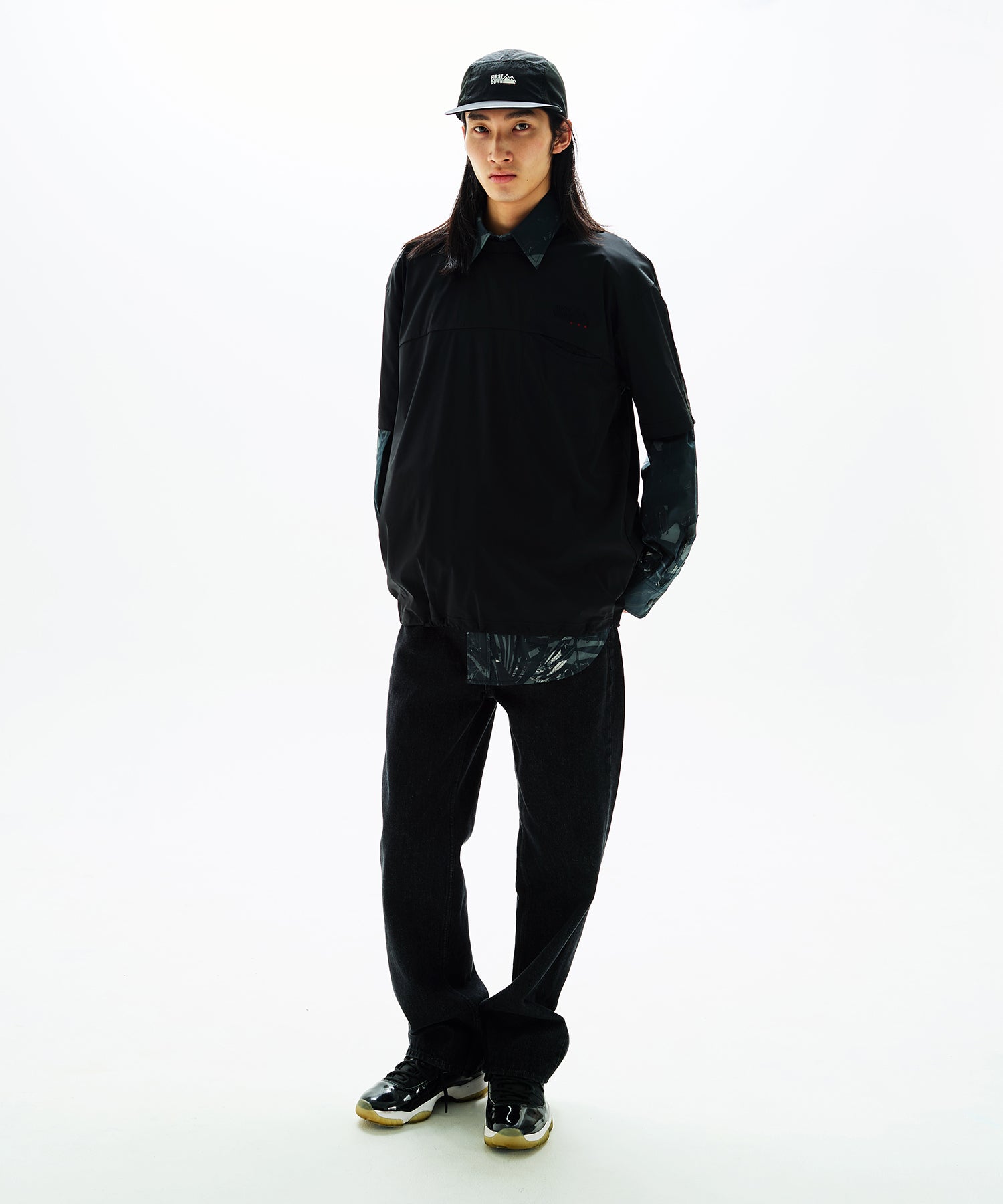 柄を活かして1枚で主役として着用するのはもちろん、アウターやベストのインナーに差し込んでもアクセントになる万能アイテム。ボトムは無地のワイドパンツやデニム、カーゴパンツなどと合わせてリラックス感のあるスタイルに仕上げるのがオススメです。ストリートからアウトドアミックス、キレイめまで、着こなし次第で幅広いジャンルに対応します。