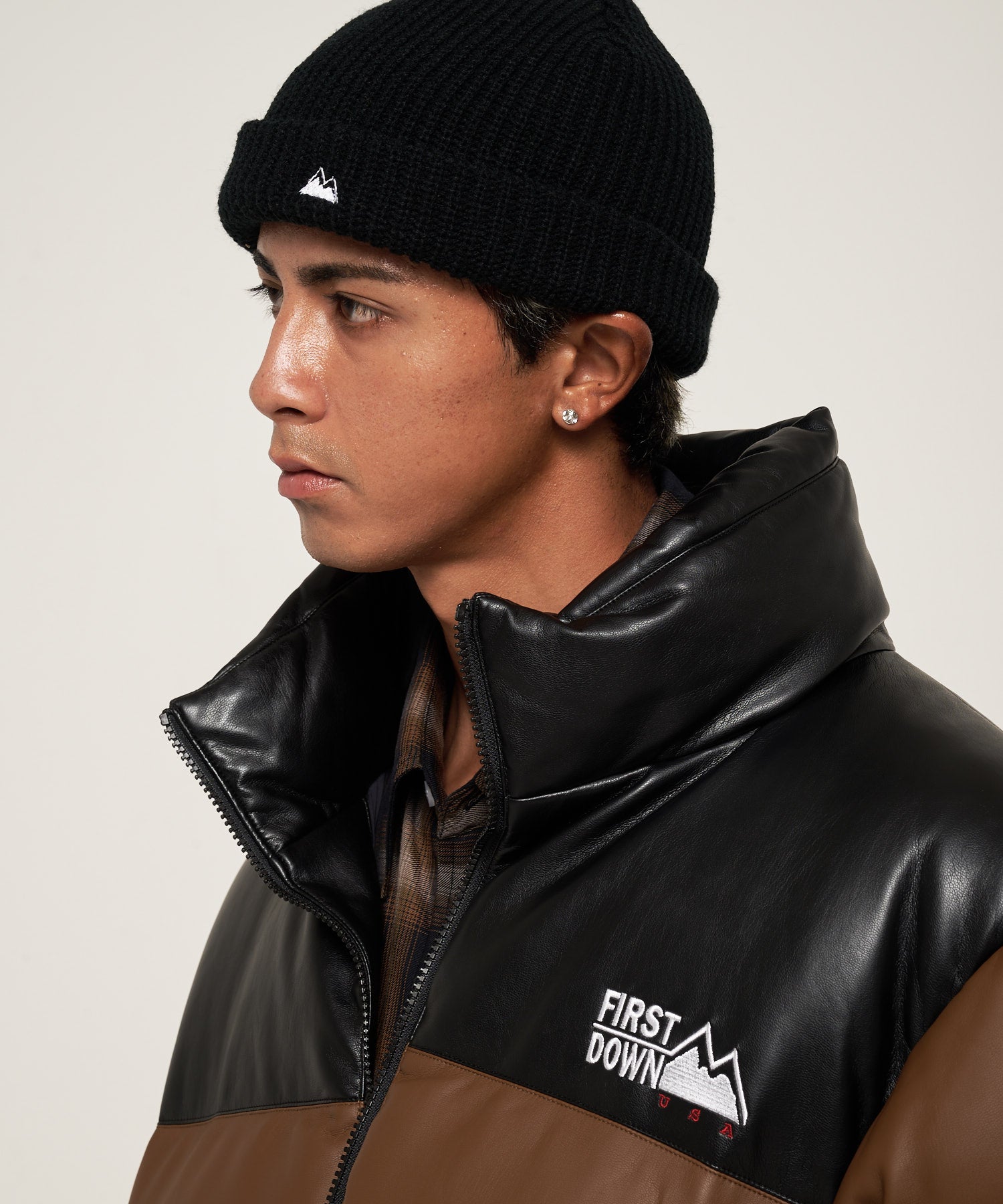 FIRST DOWNのアイコンであるバブルダウンジャケットにフェイクレザーを採用し、無骨さと洗練さを両立したモデル。ベーシックなルックスに重厚感と都会的なムードを漂わせる。計算されたボリューム感の立体シルエットは、着るだけでスタイルが完成する存在感を演出。