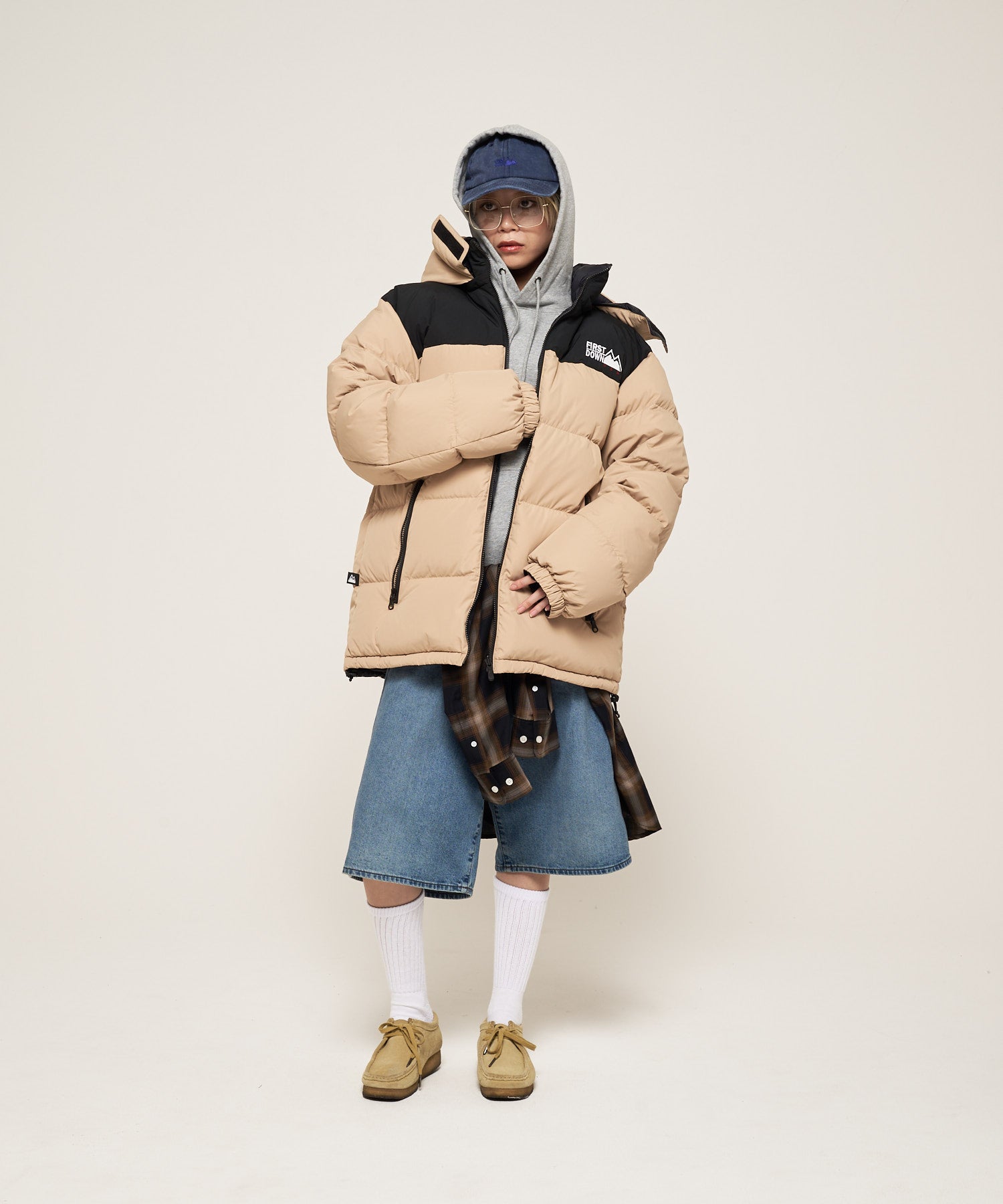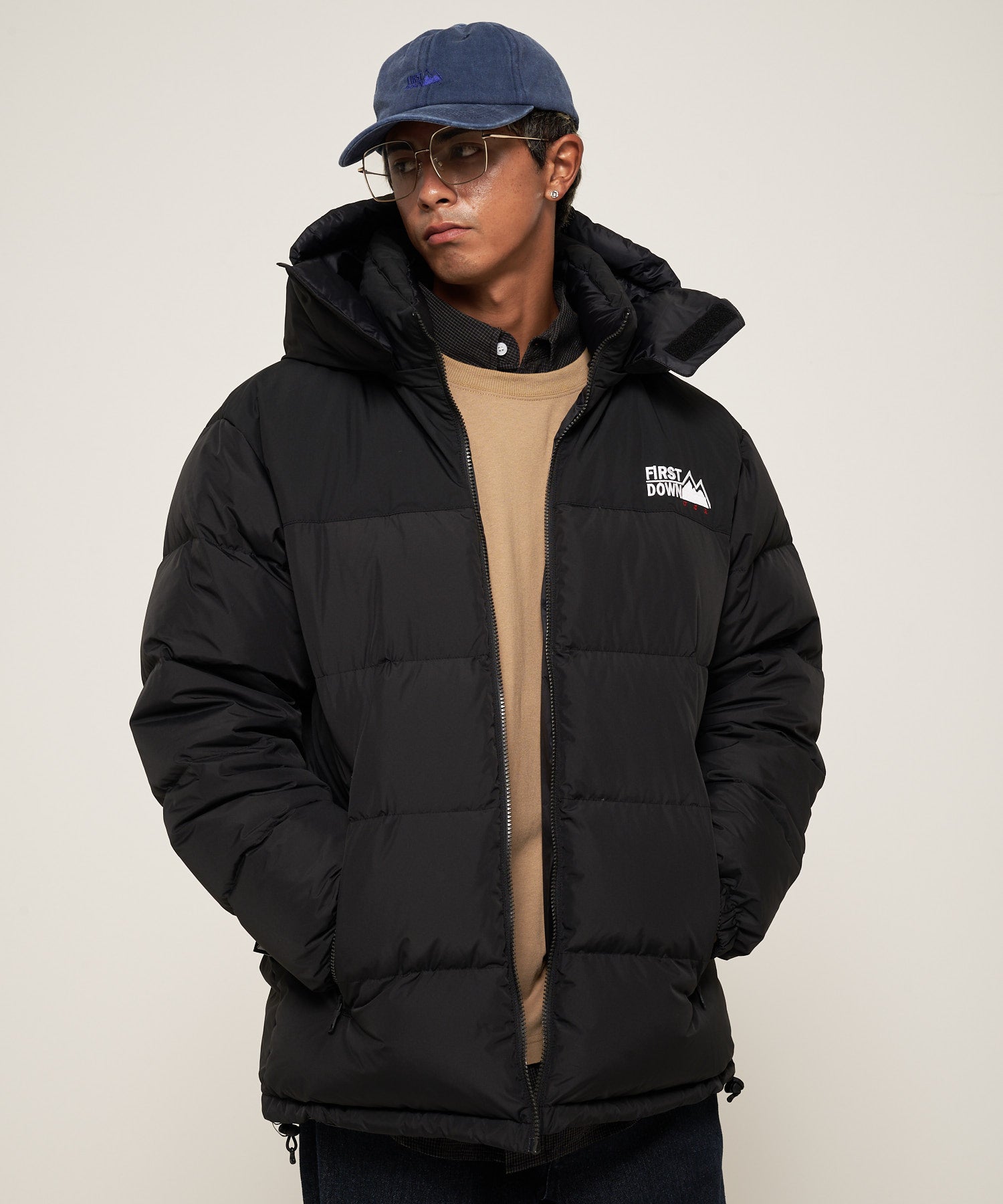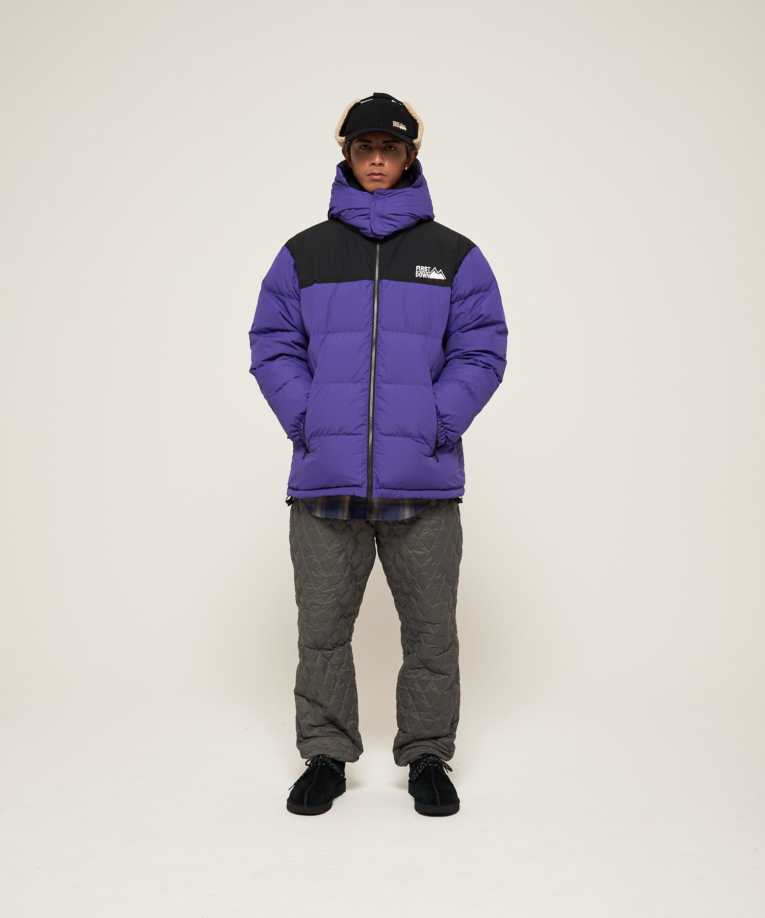 新型のフード付きのバブルダウンジャケット。FIRST DOWNを象徴するバルーンシルエットに、立体感のあるフードを組み合わせることで、存在感と防寒性を両立しています。フードはZIPで取り外し可能。定番であるスタンドタイプのバブルダウンジャケットとしても着用できます。定番のバブルダウンジャケットよりも着丈も少し長くしている設計。複数のZIPディテールを備え、アクティブな印象をプラス。リバーシブル仕様で、表面(キルト・パネル切替)と裏面(キルトレス・ブラック)をその日の気分で切り替えられ、さらにフード脱着も可能な4WAY仕様。シンプルでありながら、細部まで計算されたディテールが際立つ新型バブルダウンです。