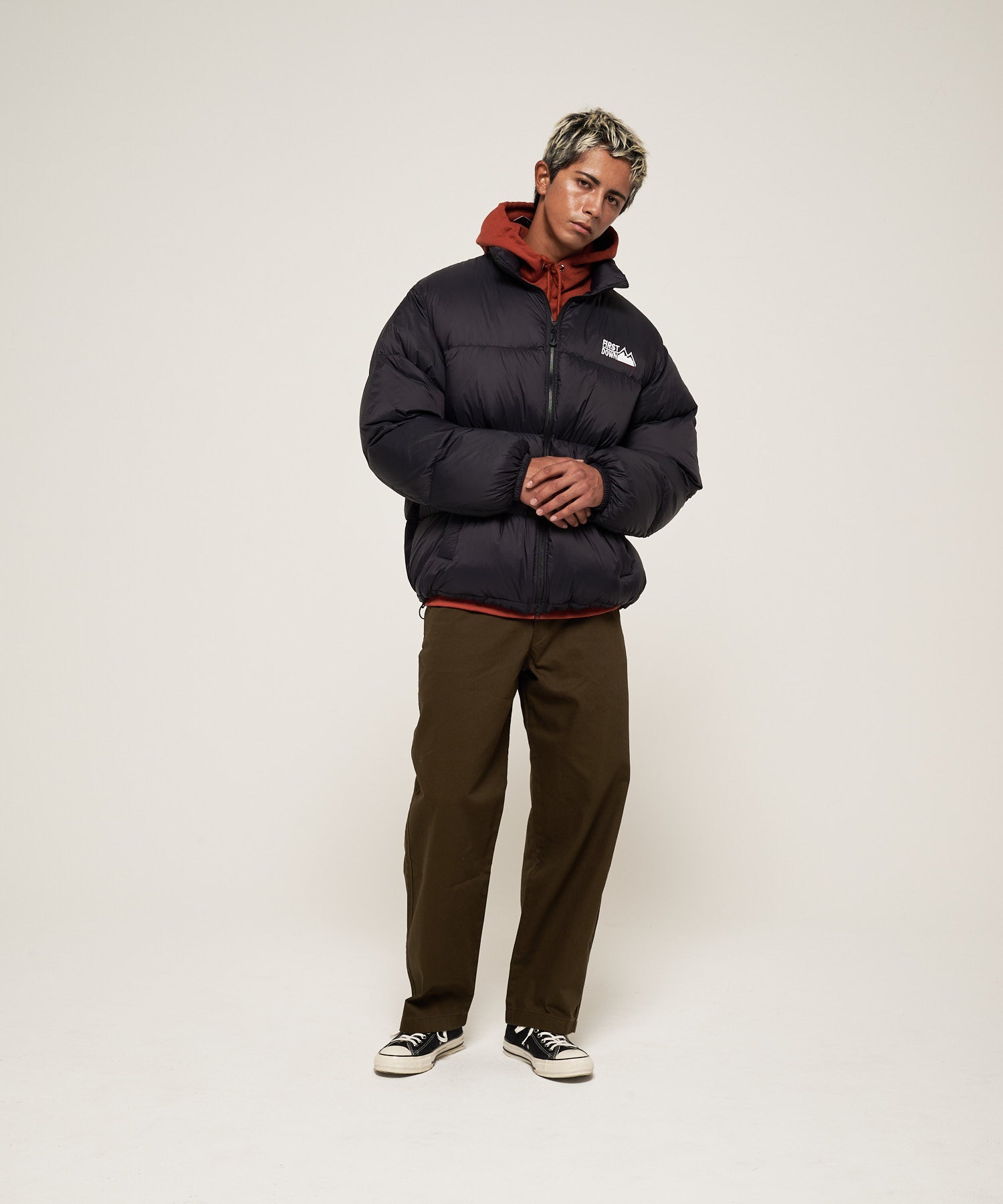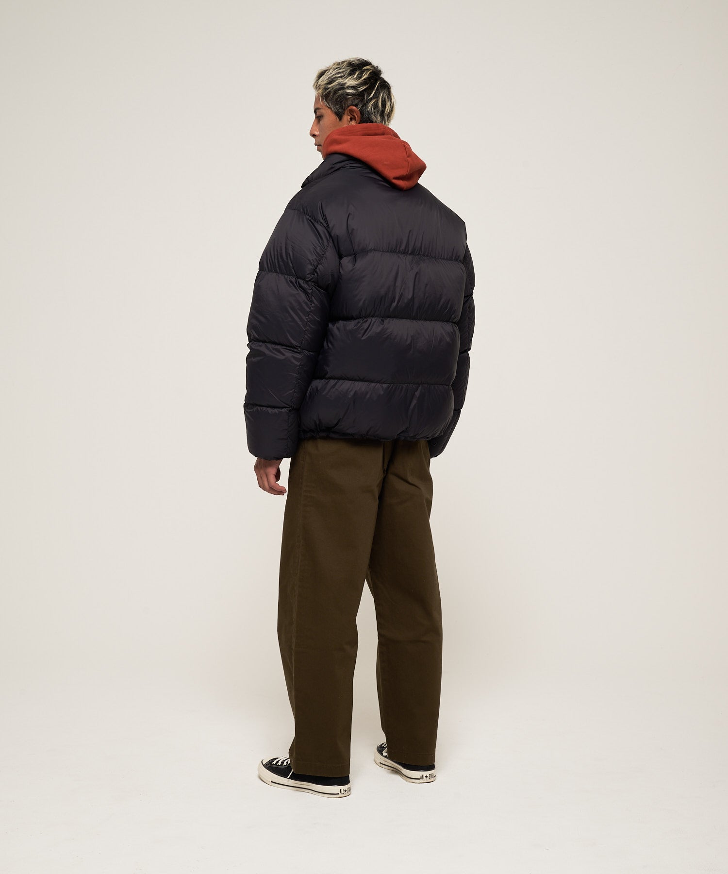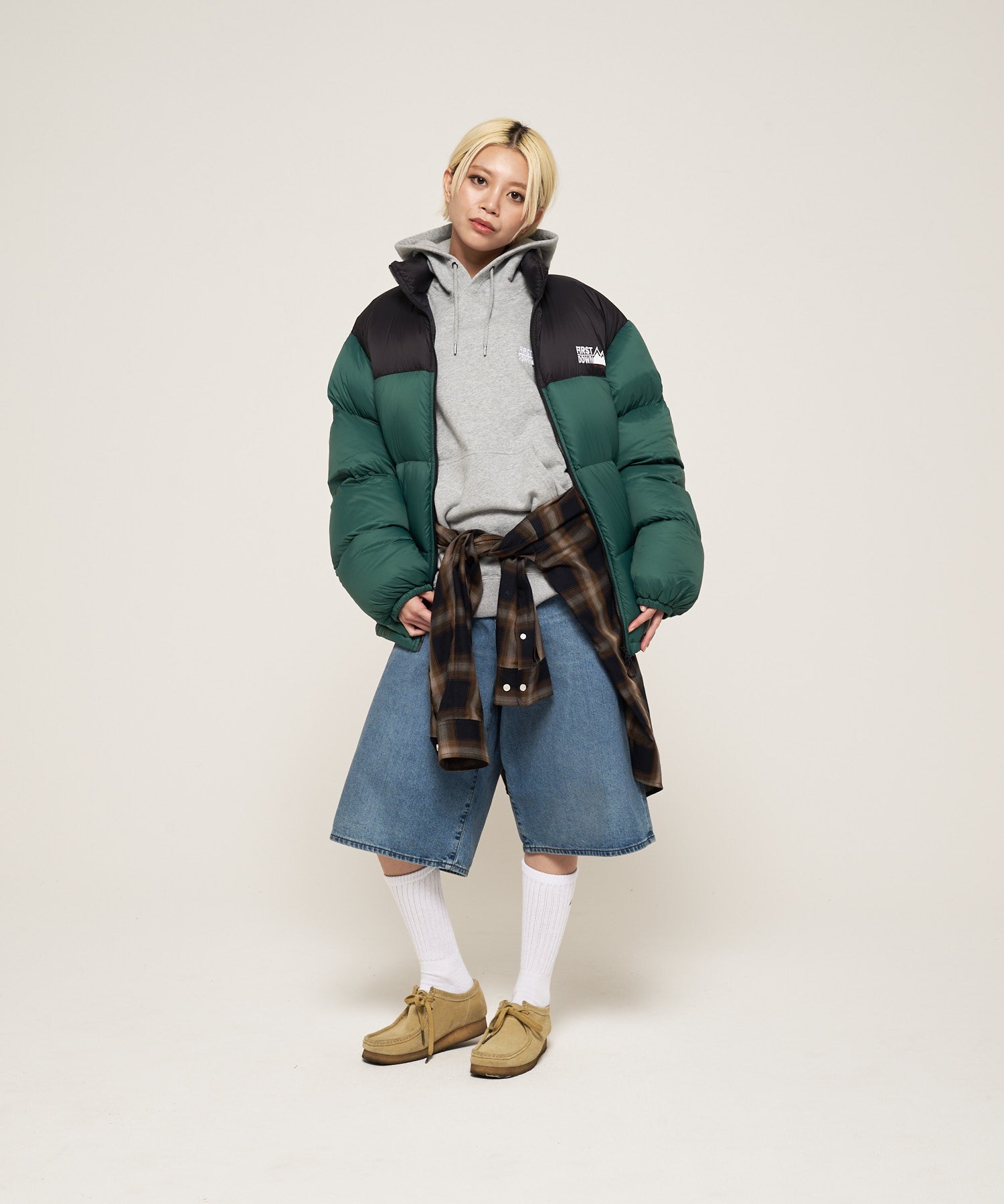 を象徴する「バブルダウンジャケット」の表地を超軽量素材に変更したイノベーションモデル。軽さと着心地の良さ、保温性を追求したライトバブルダウンジャケットです。アイコン的なリバーシブル仕様をあえて省き、軽さを追求しています。裾には調整可能なスピンドルコード付き。ファスナーはWZIPになっており幅広いスタイリングが可能。胸元にはブランドの象徴であるロゴ刺繍を施し、シンプルながら存在感のある仕上がりです。付属の収納袋にコンパクトに収まるパッカブル仕様で、持ち運びにも優れています。ポケットの中は起毛生地を貼ることで冬場に助かるあったかポケット仕様。オリジナルの引手やストッパーなど、付属にもこだわりが光ります。