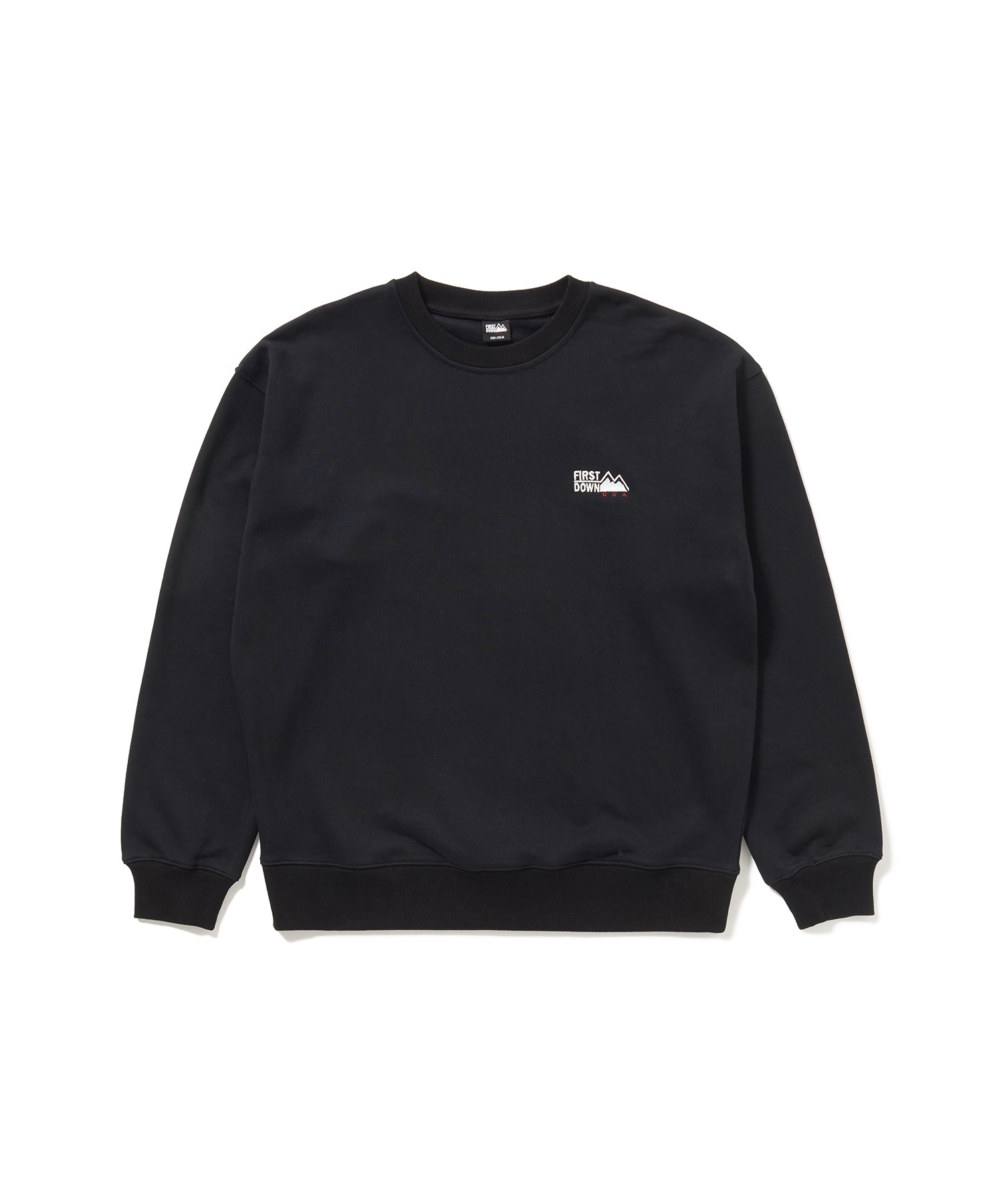 定番のワンポイントロゴのクルーネックスウェット。胸元に配した「FIRST DOWN USA」のロゴ刺繍がワンポイントとなり、シンプルながらもブランドの個性をしっかりと主張します。身幅にゆとりを持たせたボックスシルエットと、程よい着丈でユニセックスに着こなせるデザイン。